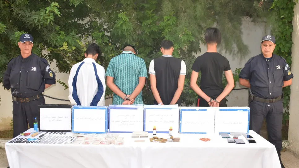 تمكن أعوان الأمن الحضري الثاني بالبوني في عنابة، نهاية الأسبوع، من حجز 69 سلاحا أبيضا محظورا، 190 غراما من المخدرات وقارورة من سائل مخدر، 31 غراما من المرجان الخام وسبعة هواتف نقالة. وأضافت المصالح ذاتها أنها أوقفت في هذه العملية أربعة أشخاص تتراوح أعمارهم بين 21 سنة و29 سنة، وبعد استكمال الإجراءات القانونية تم تقديم المعنيين أمام نيابة الجمهورية بمحكمة الحجار.