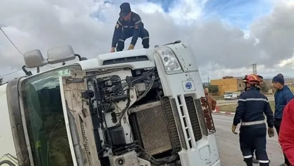 غليزان: انقلاب شاحنة مقطورة بالطريق الوطني 90
