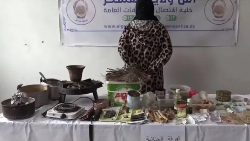 وأفاد بيان للمصالح ذاتها، اليوم الأحد، بأنه "على إثر الاستغلال الجيد لمعلومات واردة إلى المصلحة نفسها، تفيد بممارسة امرأة مشتبه فيها طقوس السحر والشعوذة على مستوى مسكنها بأحد أحياء مدينة مازونة. وبعد عملية الترصد، وبالتنسيق مع وكيل الجمهورية لدى محكمة مازونة، تم توقيفها وضبط، خلال عملية تفتيش مسكنها، صور فوتوغرافية من كلا الجنسين، وكمية من الرصاص، بالإضافة إلى أعشاب ومعدات تستعمل في عملية السحر والشعوذة، ومبلغ مالي من العائدات الإجرامية يفوق 15 مليون سنيتم".