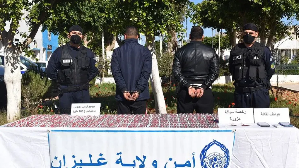 تمكنت فرقة البحث والتدخل بأمن ولاية غليزان من تفكيك شبكة إجرامية متكونة من شخصين مختصة في نقل وترويج المؤثرات العقلية، حيث جاءت القضية على إثر استغلال معلومات تفيد بوجود شبكة مختصة في نقل وترويج المؤثرات العقلية من شرق البلاد إلى الولايات الغربية، وبعد إعداد خطة عمل محكمة بالتنسيق مع النيابة المحلية المختصة إقليميا تم توقيف شخصين على متن مركبتين من نوع رونو سامبول وهيونداي أكسنت أحدهما يستعمل رخصة سياقة مزورة، ليتم ضبط داخل المركبتين كمية معتبرة من المؤثرات العقلية قدرت ب:2940 كبسولة من المؤثرات العقلية. وقد أفضت التحقيقات التي باشرتها الفرقة إلى أن المشتبه فيه يستعمل رخصة سياقة مزورة لتضليل...