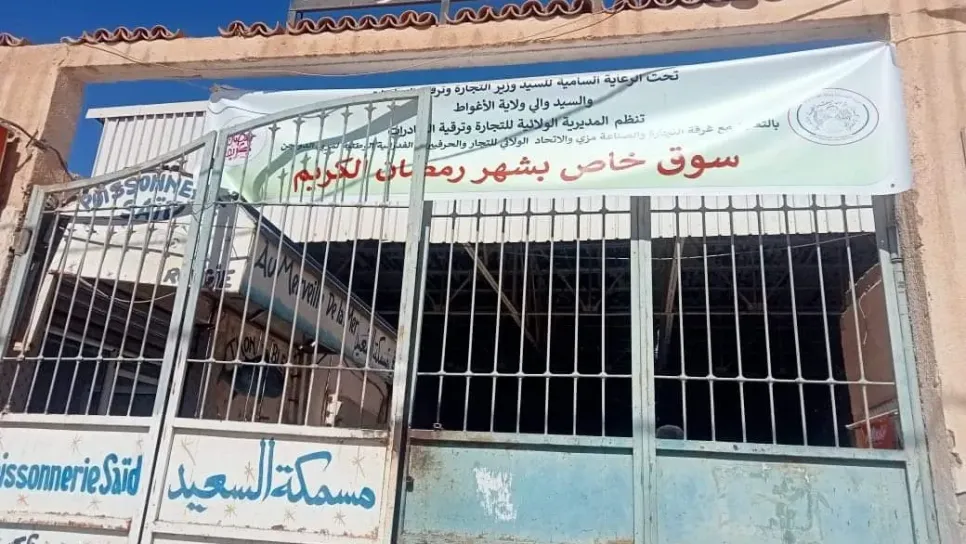 قصد ضمان التموين المستمر والمباشر بالمواد الغذائية الواسعة الاستهلاك، لا سيما خلال شهر رمضان المعظّم، قام والي ولاية الاغواط، فضيل ضويفي، بإعطاء إشارة افتتاح السوق الجوارية الكائنة بوسط مدينة الأغواط الخاصة بشهر رمضان ، مقابل مقرّ البلدية، بهدف تمكين المستهلكين من اقتناء المواد الواسعة الاستهلاك بصفة مباشرة من المنتجين، حيث تمّ فتحها بمبادرة من مصالح مديرية التجارة بمساهمة غرفة التجارة والصناعة " مزي" والاتحاد المحلي للتجار والحرفيين، وكذا منتجي الحليب ومشتقاته الاتحاد الوطني للفلاحين الجزائريين، والغرفة الفلاحية، وبعض منتجي اللحوم الحمراء والبيضاء والبيض، وايضا مؤسسة مطاحن الأغواط...
