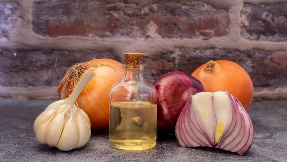 خليط الثوم والبصل يعتبر واحداً من الحلول القادرة على إعطاء نتائج مُرضية لتعزيز نمو الشعر، وكذلك الحصول على خصلات قوية.وذلك لأن خلط كل من زيت أو ماء الثوم والبصل بعضهما مع بعض، وتطبيقهما على فروة الرأس يمكن أن يعطيا نمواً جيداً من خلال تقوية بصيلات الشعر. يأتي الثوم بالعديد من العناصر الغذائية الأساسية مثل فيتامين C، ومصادر السيلينيوم، وكذلك النحاس، والتي لا تعتبر مفيدة فقط عند تناوله، وإنما تساعد على كثافة نمو الشعر أيضاً.إلى جانب ذلك، يضمن النحاس الموجود في الثوم نمواً مناسباً للشعر وتكثيفه وتعزيز لونه الطبيعي، فيما يساعد السيلينيوم الموجود في الثوم أيضاً في تحفيز الدورة الدموية.وي...