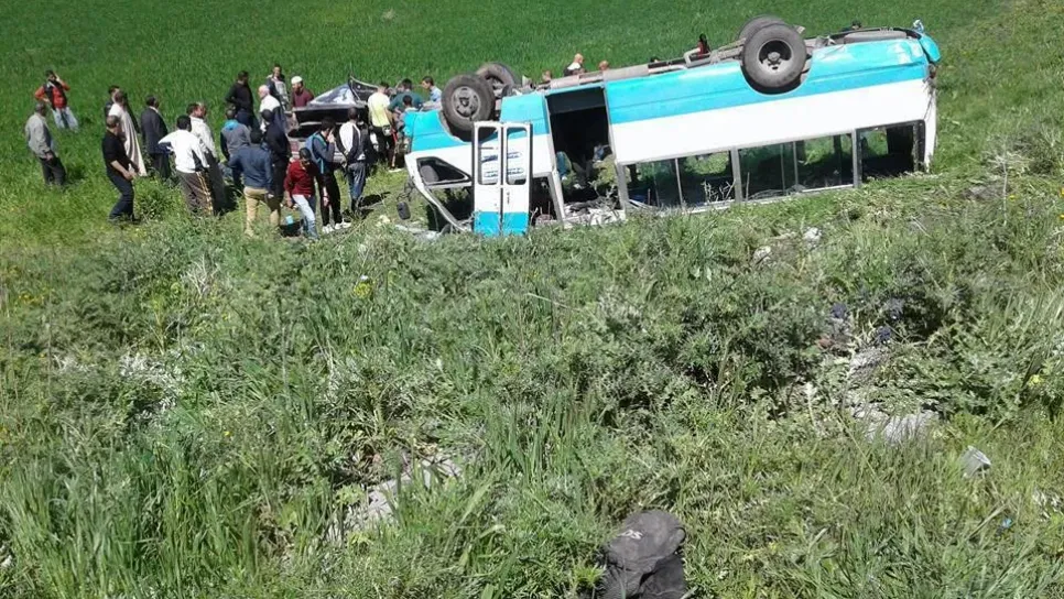 قالمة:15جريحا في اصطدام بين حافلة وسيارة وانقلابهما