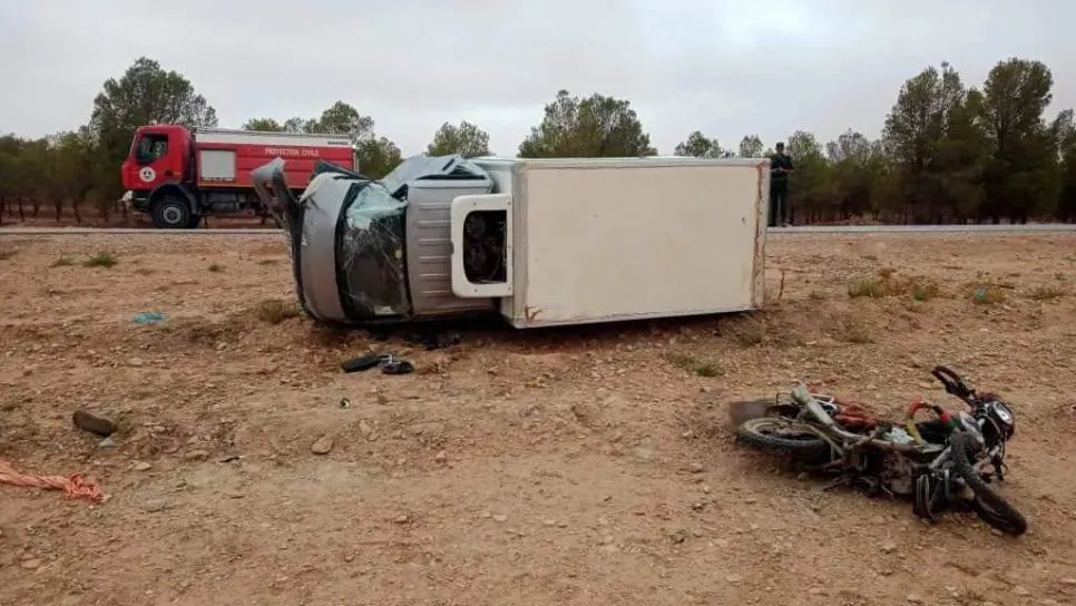تدخلت وحدة الحماية المدنية لدائرة رأس الماء صباح اليوم في حدود الساعة 06 سا و 42 دقيقة من أجل حادث مرور خطير متمثل في اصطدام سيارة نفعية بدراجة نارية كان على متنها شخصين في الطريق الولائي رقم 55 إقليم بلدية رجم دموش . وأدى الحادث الى إصابة ثلاثة أشخاص من جنس ذكر أعمارهم بين 27 و 41 سنة لهم إصابات متعددة إثنان من راكبي الدراجة النارية نُقلا في حالة حرجة الى مستشفى رأس الماء ليلفظا انفاسهما.