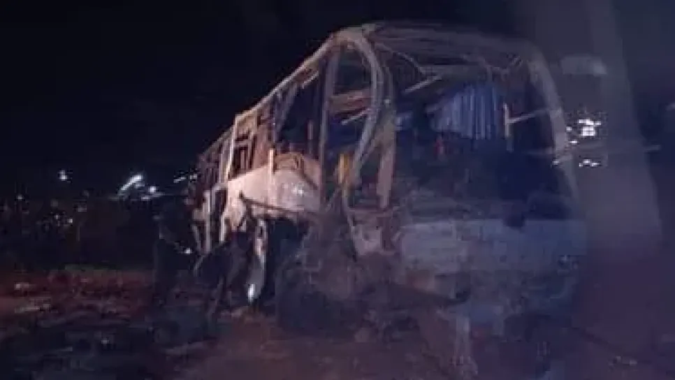 توفي شخصان وأصيب ثلاثة وثلاثون آخرون في حادث مرور وقع ليلة البارحة على مستوى الطريق الوطني رقم 06 في محوره العابر لإقليم بلدية مغرار بولاية النعامة. وأفادت مصالح الحماية المدنية في بيان لها بأن إسعافاتها تدخلت على الساعة العاشرة ليلا وعشر دقائق (22:10)، من أجل حادث مرور نجم عن اصطدام بين حافلة لنقل المسافرين تعمل على خط بشار ـ سطيف وسيارة على مستوى الطريق الوطني رقم 06 ببلدية مغرار وبالضبط في المكان المسمى الغويبة. وأوضح نفس المصدر إن الحصيلة النهاية لحادث المرور، أسفرت عن وفاة شخصين وإصابة 33 آخرين بجروح متفاوتة الخطورة تم إسعافهم ونقلهم على جناح السرعة إلى المستشفى المحلي وتحوي...