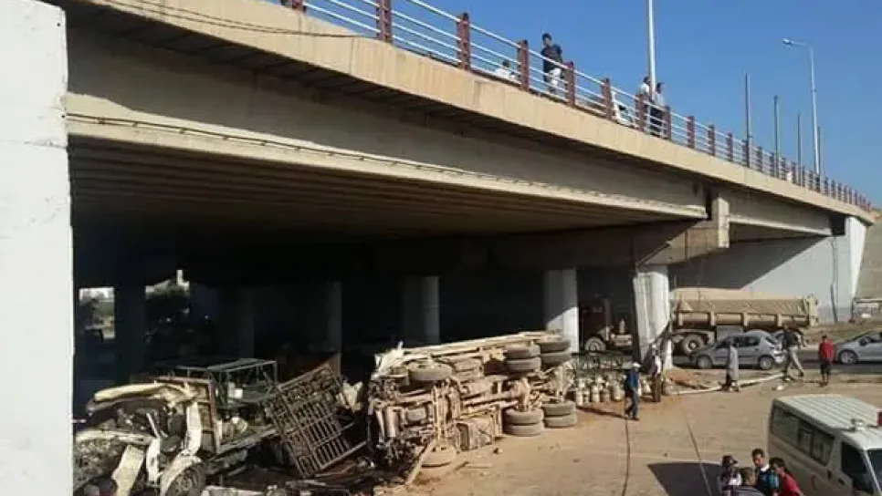 خلف حادث اصطدام شاحنتين وسيارة سياحية اليوم الخميس بوهران مقتل شخص واحد وإصابة 6 آخرين بجروح ثلاثة منهم في حالة خطيرة حسبما أفادته الحماية المدنية. و وقع الحادث على مستوى الطريق الوطني رقم 11 الرابط ما بين وهران ومستغانم بالقرب من بلدة سيدي الباشير (شرق مدينة وهران) عندما اصطدمت شاحنة كانت تحمل الرمل بأخرى ناقلة لقارورات غاز البوتان قبل أن تتعرض أيضا الى سيارة سياحية. وقد أفضى الحادث الى مصرع سائق الشاحنة ناقلة غاز البوتان بينما أصيب سائق الشاحنة الثانية بجروح اضافة الى ركاب السيارة الذين يوجد من بينهم 3 أشخاص في حالة خطيرة وهم السائق وطفلين يبلغ عمرهما 3 و7 سنوات. وقد تم نقل الجرحى البالغي...