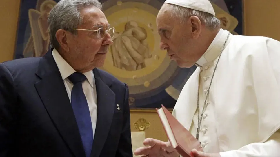 شكر الرئيس الكوبي، راوول كاسترو، في الزيارة الاولى له الى الفاتيكان، اليوم الاحد، البابا فرنسيس، على وساطته لاصلاح العلاقات بين واشنطن وهافانا، وذلك خلال لقاء استمر ساعة من الوقت بينهما. وقام الفاتيكان والبابا فرنسيس تحديدا بدور مهم في اعادة العلاقات الدبلوماسية بين كوبا والولايات المتحدة في كانون الاول الماضي، بعد حوالى 50 عاما من التوترات. وبعد اللقاء ظهر الرجلان سوية لحوالى دقيقة من الوقت ليتبادلا الابتسامات والاحاديث قبل ان ينفصلا. وقال المتحدث باسم الفاتيكان، فيديريكو لومباردي، ان "الرئيس الكوبي التقى البابا فرنسيس ساعة من الوقت وشكره على وساطته بين كوبا والولايات المتحدة". واوضح ان "...