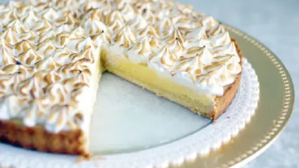 المقادير:200 غرام زبدة دائبة، علبة بسكويت، علبة حليب محلى مكثف، علبة قشطة، عصير ليمونتين، بياض أربع بيضات، كوب سكر، ملعقة كبيرة فانيليا طريقة التحضير:نقوم بطحن البسكويت ثم نضيف له الزبدة الدائبة ونرصه في طبق التقديم. نخفق الحليب المكثف بالخلاط الكهربائي ثم نقوم بإضافة عصير الليمون بالتدريج، وكلما زادت مدة الخلط كانت النتيجة أفضل، ثم نضيف القشطة، نضيف هذا الخليط فوق طبقة البسكويت. في الأخير نضع طبقة “الميرينغ” ثم تخبزها حتى تكسب لونا ذهبيا.