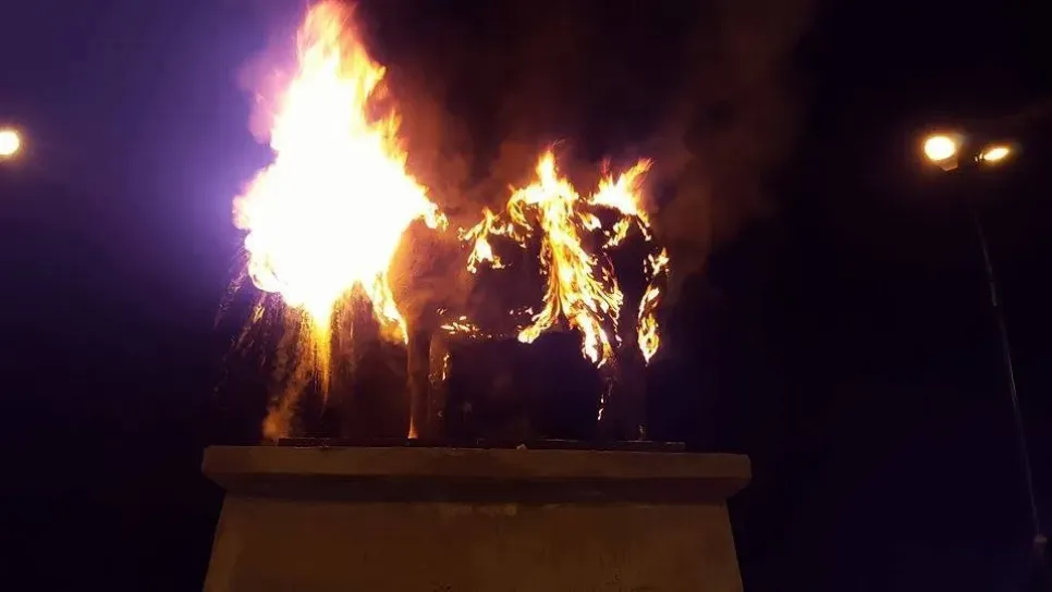 أقدم ليلة الخميس إلى الجمعة مجهولون على حرق تمثال مجسم لكبش ثبت منذ يومين بالمحور الدائري بحي جبل الجرف بمدينة تبسة في أتجاه طريق المدينة الجديدة الدكان. وقد تم ازالته من ذات الموقع بعد ان اتت عليه السنة اللهب وتفحم نهائيا وتأتي هذه العملية بعد تعليقات واسعة تبناها الشارع المحلي التبسي تصب مجملها في اتجاه انقسام الشارع بين رافض للفكرة ونبذها أصلا وبين غير مكترث بما يجري في الساحة ورأي ثالث يرفض فكرة العنف والتخريب أصلا ،في مقابل ذلك تتموقع بمدينة تبسة منذ أكثر من 40 سنة تماثيل أخرى اللبؤة و النسر بشارع واد هلال المؤدي إلى مقر الولاية فيما شهت المدينة منذ أيام قليلة تثبيت مجسمات أخ...