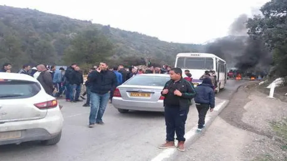 قام سكان بعض القرى صبيحة اليوم الجمعة بقطع الطريق الرابط بين البويرة وتيكجدة على مستوى بلدة حيزر، ما تسبب في منع العديد من السياح من الوصول إلى المنطقة. وقام المحتجون بغلق الطريق عن طريق وضع المتاريس وإشعال إطارات السيارات، للمطالبة بربط قراهم بشبكات المياه والغاز.
