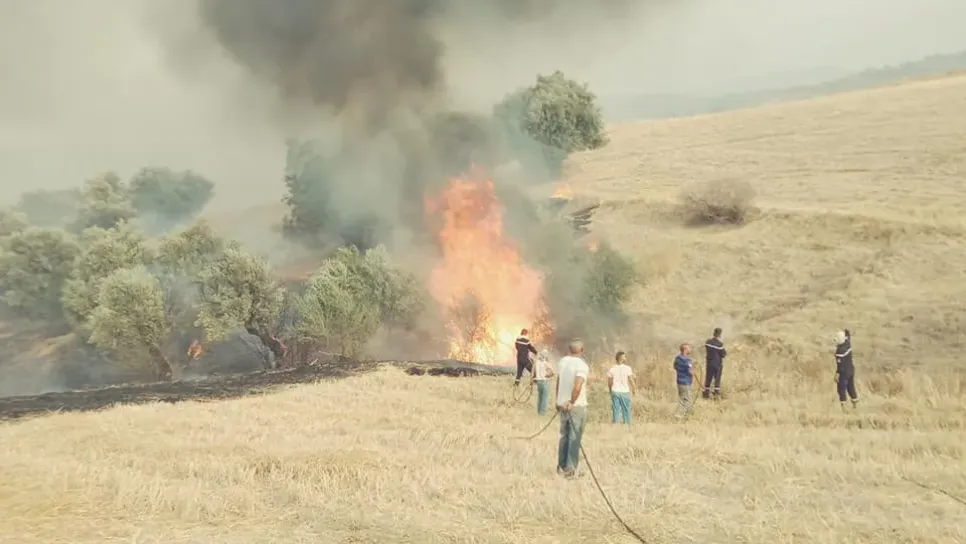 أُصيب مساء أمس، قائد الوحدة الثانوية للحماية المدنية وعونان اثنان، بحروق وصفت إحداها بحروق من الدرجة الثانية، خلال عمليات تدخل لإخماد حريق غابي مهول شب بسفح جبل دباغ غربي ڨالمة . وقالت مصادر مطلعة أنّ القائد وفرقته للحماية المدنية تمكنوا من النجاة من موت محقق، بعدما هاجمتهم ألسنة لهب سريعة جدا بفعل الرياح القوية التي هبّت بموضع الحريق. وعرف جبل دباغ بجهتيه الشرقية والغربية حرائق مهولة نهار اليوم، لا يزال بعضها متأججا ، والتي تكون خلفت خسائر معتبرة في الثروة الغابية، حسب شهود عيان ومصادر من مصالح الإطفاء التابعة للحماية المدنية والغابات. بالموازاة مع حرائق دباغ، اندلعت حرائق مهولة ببعض مشاتي...