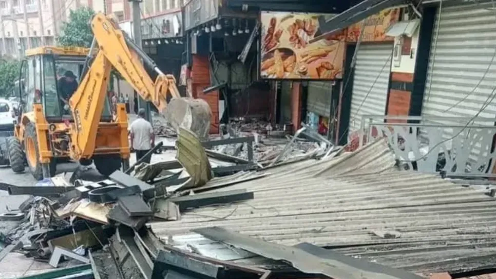تم هدم عدة محلات فوضية.