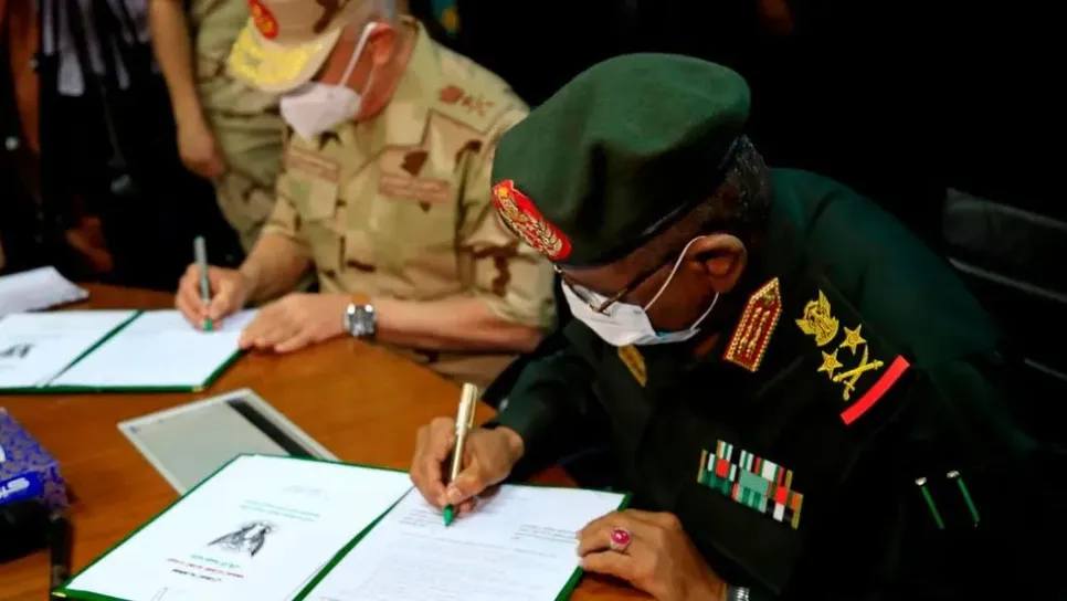 Getty Images توقيع اتفاقية تعاون عسكري بين رئيسي الأركان الجيشين السوداني والمصري قامت وزيرة الخارجية السودانية، مريم الصادق المهدي، الثلاثاء 2 مارس/آذار، بزيارة.