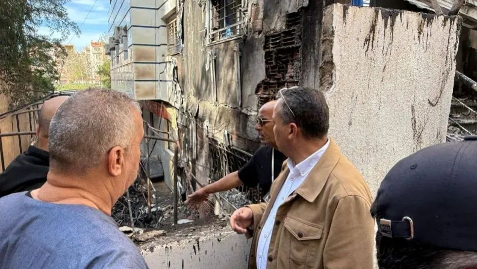 الزيارة جاءت بهدف تقييم الأضرار الناجمة عن الحريق .