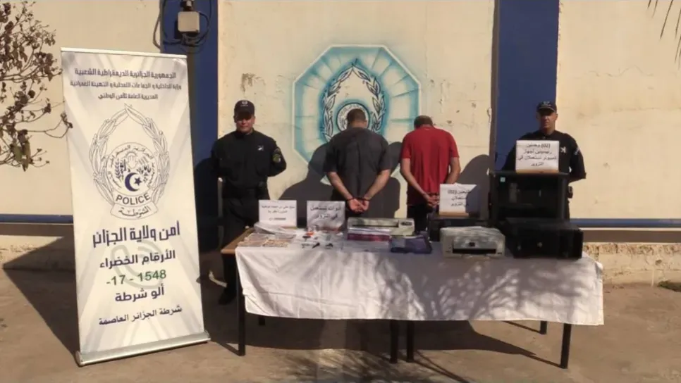 وبعد استيفاء جميع الإجراءات القانونية تم "تقديم المشتبه فيهما عن قضية تكوين جمعية أشرار للإعداد لجناية المساس بالاقتصاد الوطني، تزوير وتوزيع أوراق نقدية ذات سعر قانوني في الإقليم الوطني"، وفقا للبيان.