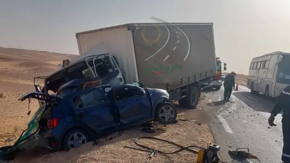توفي، اليوم الثلاثاء، أربعة أشخاص وأصيب آخر في حادث مرور وقع بولاية ورقلة وأفاد بيان لمصالح الحماية المدنية، أن العناصر التابعة لها، تدخلت في حدود الساعة السابعة صباحا وسبعة وأربعين دقيقة، من أجل حادث اصطدام بين سيارة وشاحنة على مستوى الطريق الوطني رقم 03 ببلدية ودائرة حاسي مسعود . حيث خلف الحادث وفاة 04 أشخاص بعين المكان وإصابة آخر بجروح مختلفة تم إسعافه ونقله إلى المستشفى المحلي .