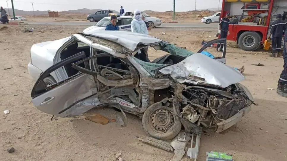 تدخل أفراد الوحدة الرئيسية للحماية المدنية بتمنراست مساء اليوم على الساعة 16و18د من أجل حادث مرور تمثل في اصطدام سيارتين بالطريق الإجتنابي. وقد أسفر عن وفاة شخصين من جنس ذكر في عين المكان يبلغان من العمر 27  سنة تم تحويلهما من قبل مصالح الحماية المدنية إلى مصلحة حفظ الجثث بمستشفى تمنراست.