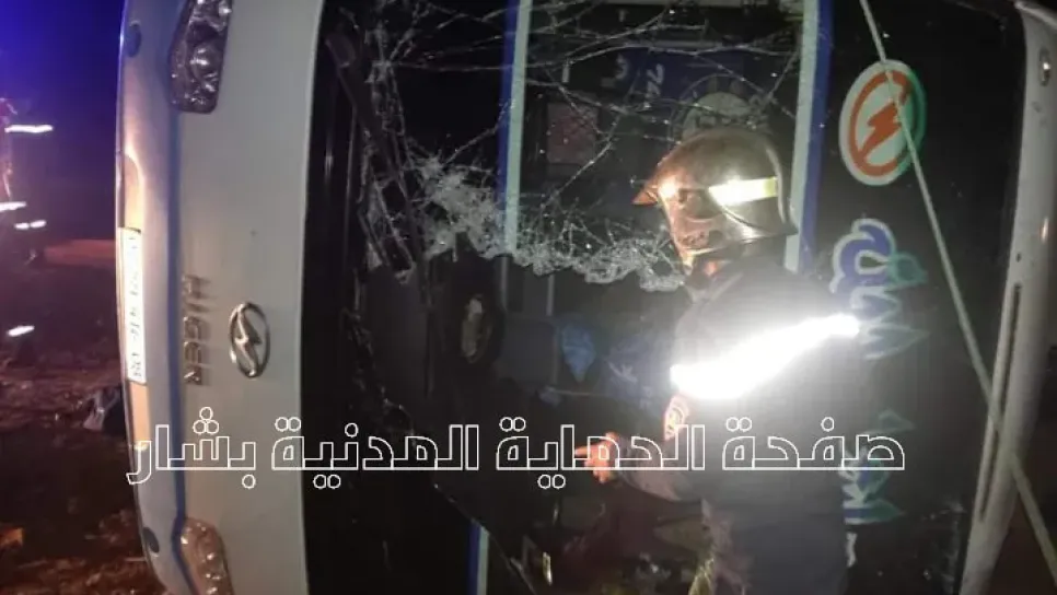 خلف ،صبيحة اليوم الأربعاء، حادث مرور وفاة شخص وإصابة 21آخرون بولاية بشار. وأفاد بيان لمصالح الحماية المدنية ، أن فرق الإنقاد والإسعـاف بوحدة الحماية المدنيـة لولاية بشار تدخلت لأجل حادث مرور مميت وقع صبيحة اليوم على الساعة الرابعة وعشرون دقيقة إثر انقلاب حافلة لنقل المسافرين (هيڨر) خـط بشـار تندوف، بالطريق الوطني رقم 06 إتجاه العبادلة،بلدية بشار. وأضاف نفس المصدر ، أن الحادث خلف وفاة ضحية بعين المكان من جنس ذكر يبلغ من العمر 48 سنة و إصابة 21 آخرين بإصابات متفاوتة الخطورة، حيث قدمت لهم الإسعافات الأولية بعين المكان ثم نقلوا للمستشفى.