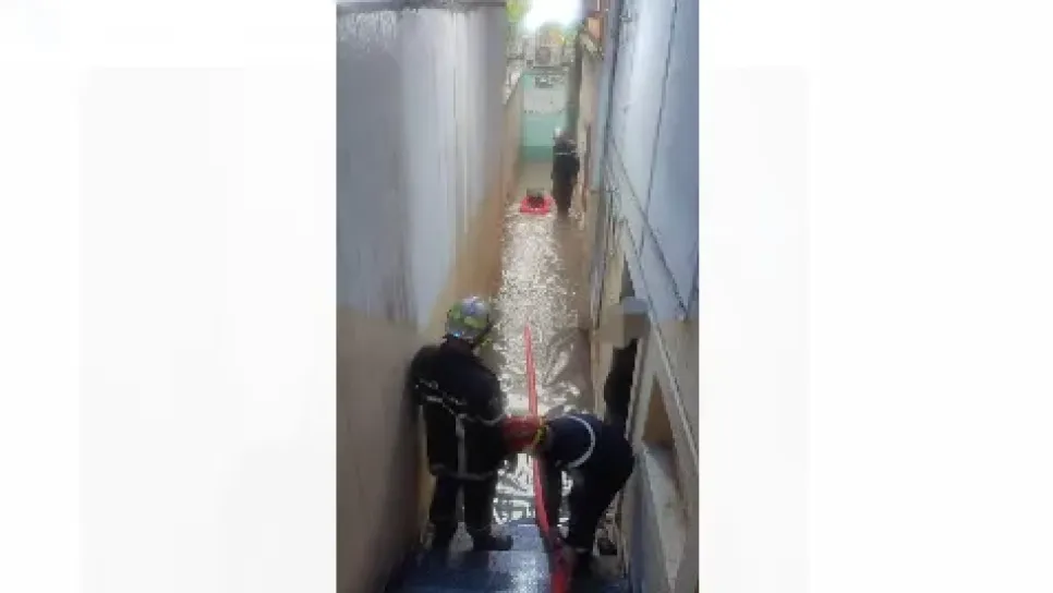 عاشت مصالح الحماية المدنية، اليوم الإثنين، حالة استنفار، بسبب التهاطل الغزير للأمطار، وتسرب المياه إلى بعض المحلات التجارية ومساكن المواطنين. وأفاد بيان لخلية الإعلام للمديرية الولائية للحماية المدنية بڨالمة، مساء اليوم، أن مصالح الوحدة الرئيسية للحماية، قد تدخلت بالحي السكني أحمد زميلي ببلدية هيليوبوليس، لامتصاص مياه الأمطار المتجمعة التي بلغ علو منسوبها 20سنتم في الطريق، باستعمال مضخة حسب مصادرنا. وتسبب التساقط المعتبر للأمطار، بحي 19جوان ببلدية قالمة، في تسرب مياه الأمطار داخل مخزن للخردوات، أين تدخل أعوان الحماية المدنية الوحدة الرئيسية لامتصاص المياه بواسطة مضخة، بعدما وصل منسوب ا...