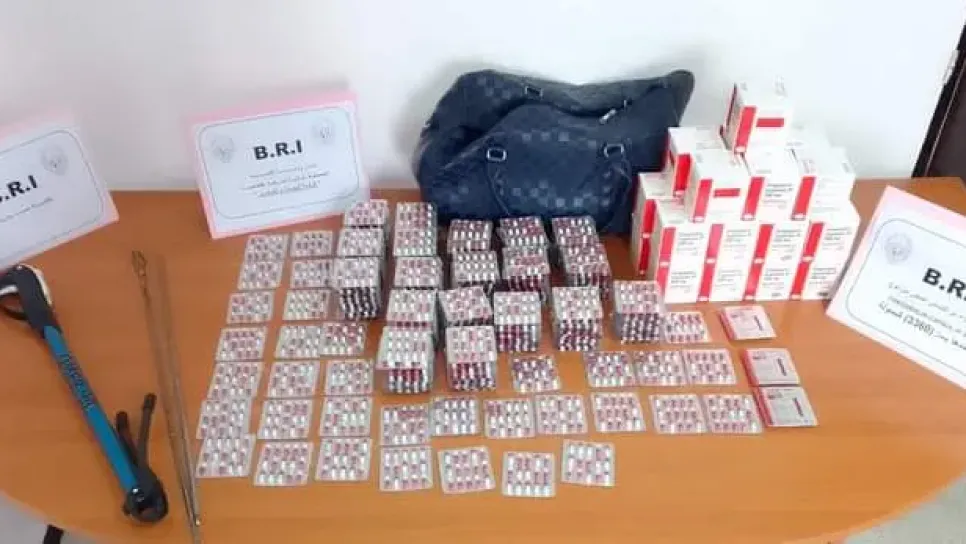 تمكنت قوات الشرطة القضائية لفرقة البحث والتدخل بڨالمة، من حجز ما لايقل عن 3360 كبسولة من المؤثرات العقلية ذات مصدر أجنبي وسلاح من الصنف الخامس (بندقية صيد بحري) ومبلغ مالي من عائدات الاتجار، وتوقيف شاب يبلغ 27 سنة في هذه القضية. العملية تمت بالتخصيص رقم 04 ببلدية بلخير، في أعقاب معلومات مفادها وجود شخص يقوم بتخزين وترويج المخدرات والمؤثرات العقلية على مستوى الحي السكنية المذكور. وقد مكن وضع خطة محكمة، واتخاذ الإجراءات القانونية بخصوص المشتبه فيه ومسكنه، مكن من حجز كمية المعلومات المذكورة والمبلغ التالي وبندقية الصيد البحرية، وتوقيف المشتبه فيه وتحويلها إلى المصلحة الشرطية وفتح تحقيق معه في...