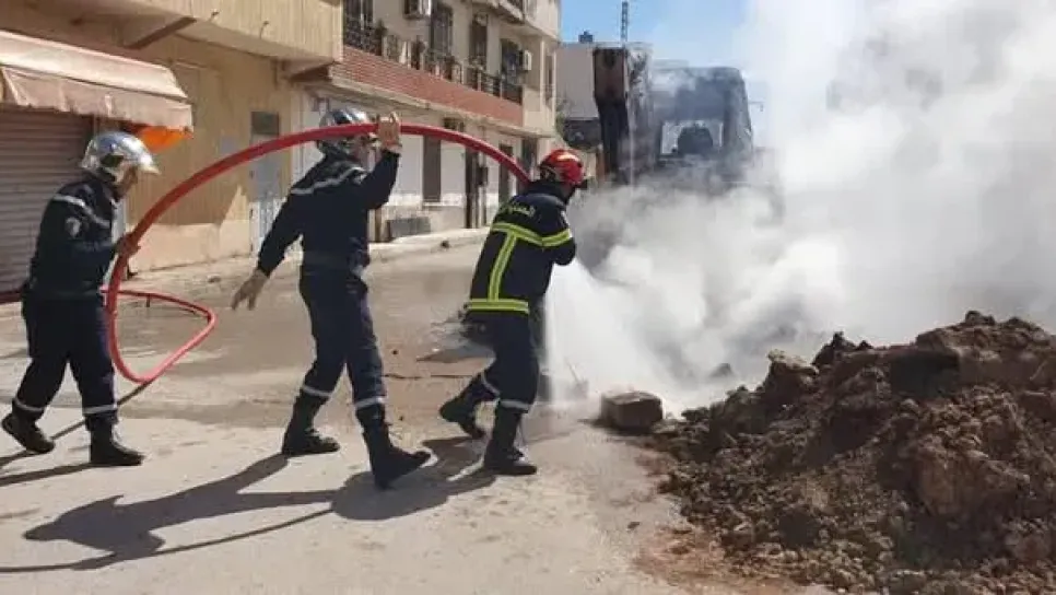 خلف حادث تسرب لغاز المدينة، متبوعا باشتعال، بنهج العربي بن مهيدي، بمحاذاة الفرع الإداري البلدي بمدينة ڨالمة، اليوم الإثنين، حالة من الهلع لدى المواطنين وبعض تلاميذ ابتدائية عائشة أم المؤمنين والمدرسة القرآنية لمسجد الإمام مالك بمدينة ڨالمة.