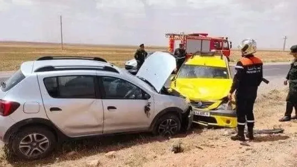 تدخلت مساء اليوم مصالح الحماية المدنية بعين الذهب على الساعة الواحدة والنصف 13:30 من أجل إسعاف خمسة جرحى بسبب حادث مرور في الطريق الوطني رقم 23 في شطره الرابط بين عين الذهب وبلدية النعيمة بتيارت باتجاه ولاية الاغواط ، نتج عن إصطدام سيارة أجرة نوع لوغان وسيارة سياحية نوع ساندرو ،حيث تم نقل الجرحى وعددهم خمسة الى العيادة المتعددة الخدمات هاشمي عبدالكريم بعين الذهب أين تم تقديم لهم الإسعافات اللازمة ، فيما باشرت مصالح الدرك الوطني في إجراءات التحقيق لمعرفة أسباب الحادث.