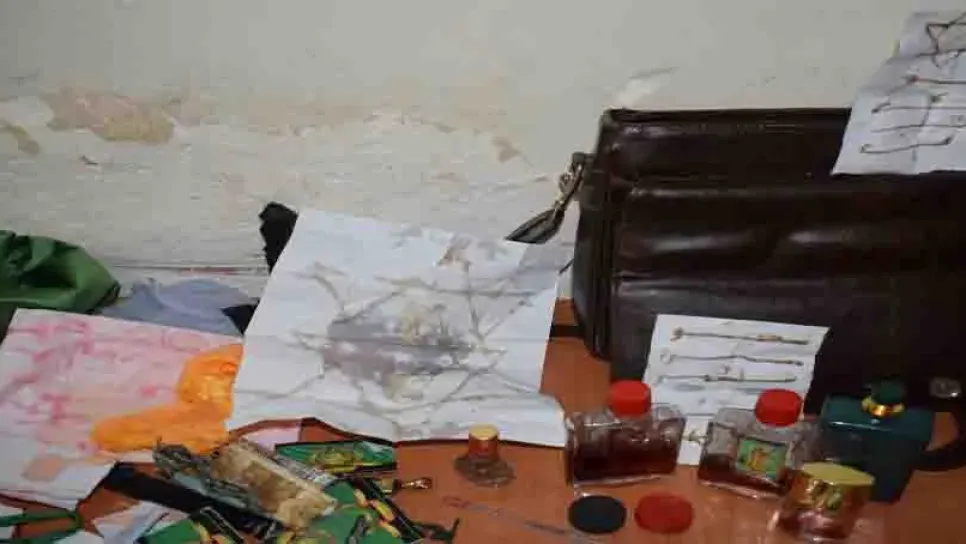 قضت، اليوم، محكمة الجنح بالسوقر بعقوبة 5 سنوات سجنا نافذا مع أمر إيداع بحق مشعوذ ضبط بحوزته أغراض غريبة تستعمل في السحر والشعوذة. وذكر بيان مصالح الأمن أن عملية توقيف المتهم، في العقد الثالث من العمر، تمت إثر دورية ليلية أمس الأول في حدود الحادية عشر ليلا أثار شخص مشبوه يحمل حقيبة انتباه عناصر الأمن، أوقف وتم تفتيشه وعثر داخل الحقيبة مستلزمات الشعوذة تمثلت في قارورات عطر مختلفة الأحجام، قصاصات ورق محروق، قفل به مفتاح، كتابات طلاسم للشعوذة، غصن شجرة صغير الحجم مربوط بخيط، ورقة نقدية محرزة بحرز وسلاح أبيض، وباستصدار أمر بتفتيش منزله بأمر من وكيل الجمهورية عثر على مصحف شريف مكتوب عليه بالقلم الأ...
