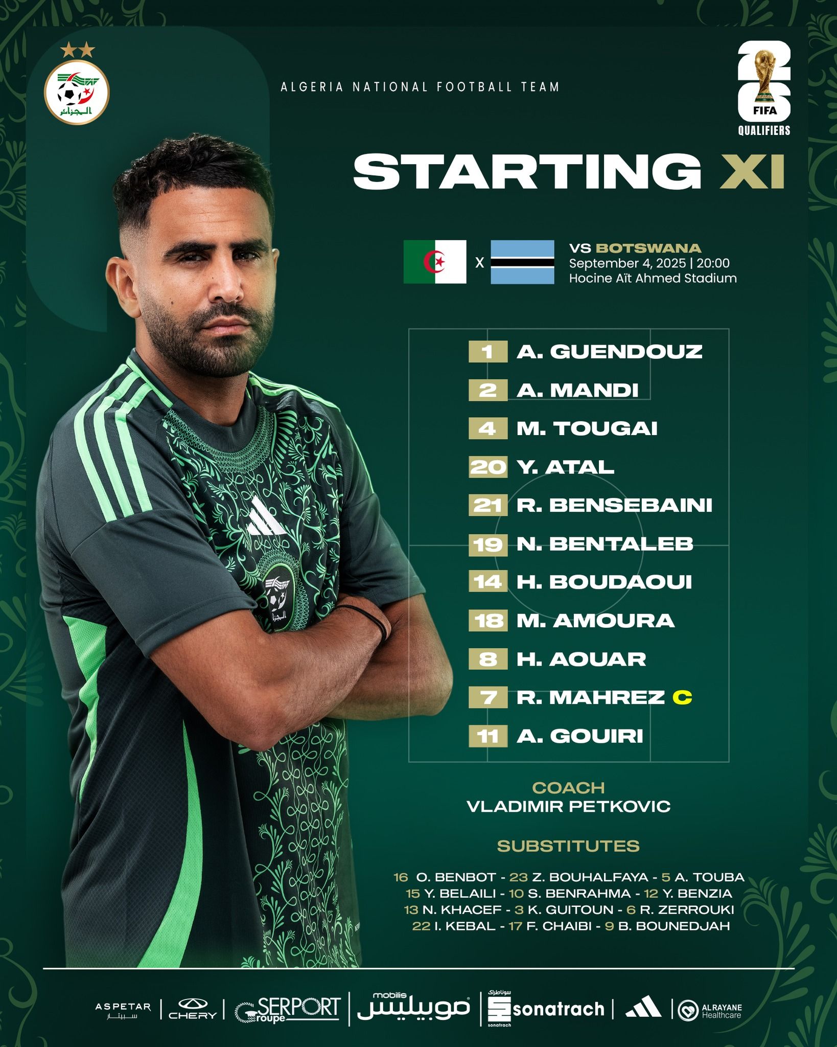 فاز رفاق رياض محرز، سهرة اليوم الخميس بلقاء مهم حين استضافوا منتخب بوتسوانا لحساب تصفيات كأس العالم 2026 على أرضية ملعب المجاهد الراحل حسين آيت أحمد بتيزي وزو.