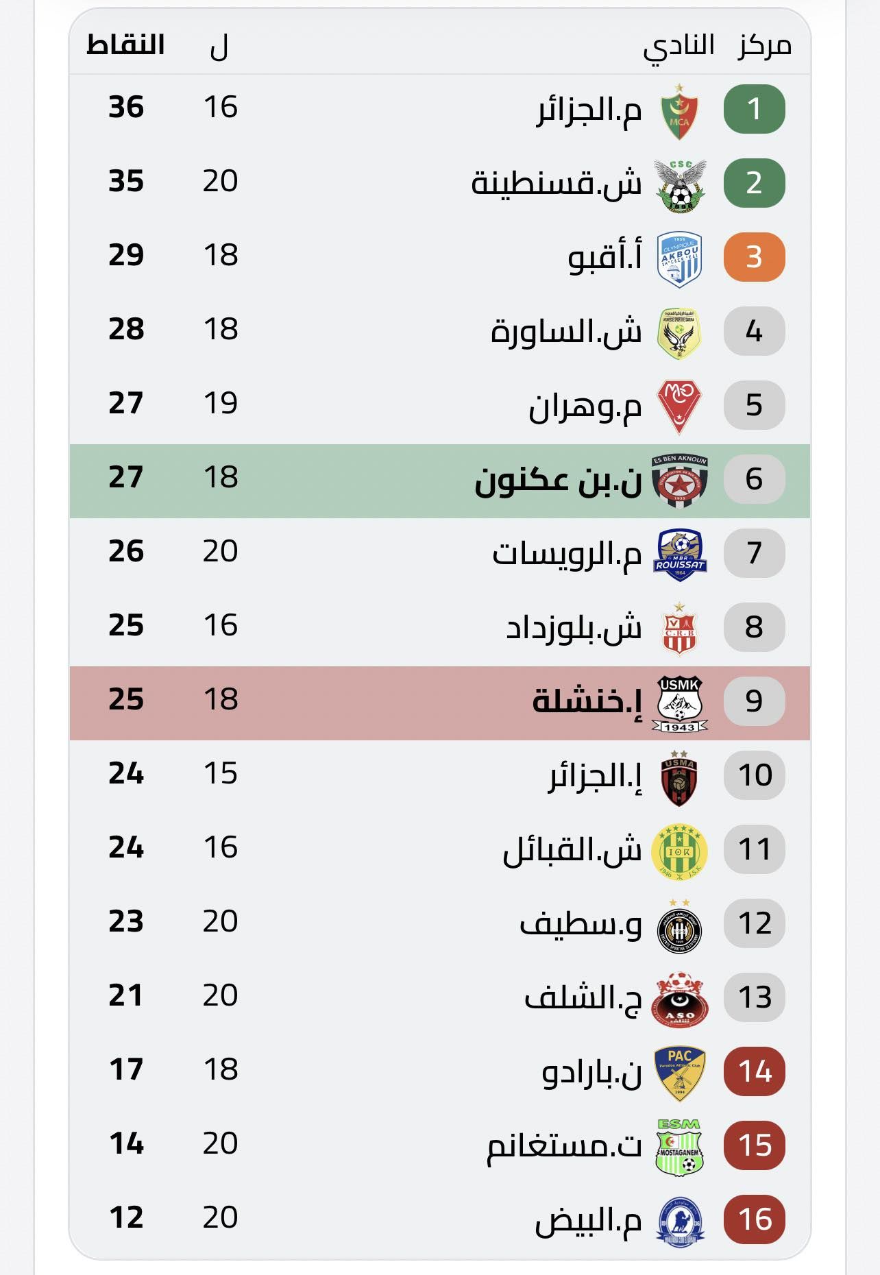 في ملعب 20 أوت بالعاصمة، شهدت مباراة نجم بن عكنون وضيفه اتحاد خنشلة خمسة أهداف مثيرة. تقدم الاتحاد في الشوط الثاني بهدفين متتاليين في الدقيقتين 58 و59 (بومشرة وإتوقا)، قبل أن يقلص النجم الفارق بهدف المخضرم جعبوط في الدقيقة الـ 89. واستمرت الإثارة في الوقت بدل الضائع بتسجيل هدفين، الأول للضيوف سمح لهم بتوسيع الفارق، والثاني لأصحاب الأرض لكنه لم يكن كافيا لتجنب الخسارة.