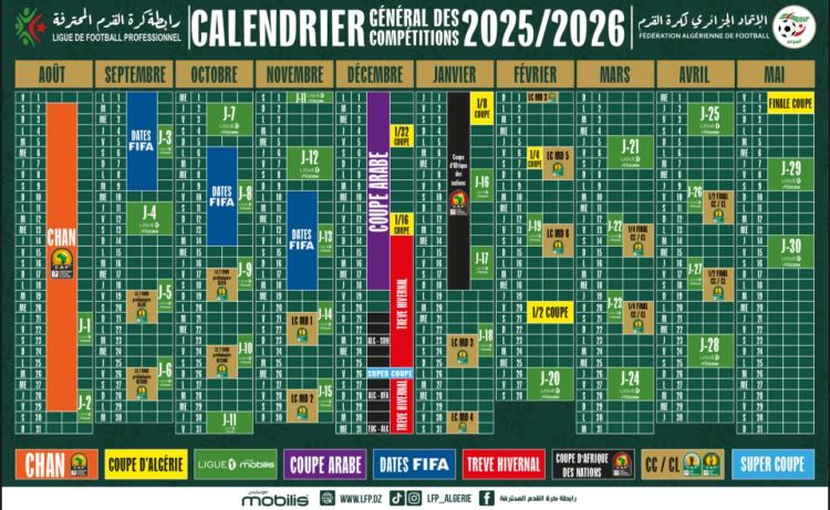 أما ختام الموسم الكروي فسيكون منتصف شهر ماي 2026، حيث حددت الرابطة المحترفة ثلاثة أيام ( 14، 15، 16 ماي 2026) لإجراء الجولة الأخيرة من البطولة، التي يحمل لقبها مولودية الجزائر المتوج بها في الموسمين الأخيرين.