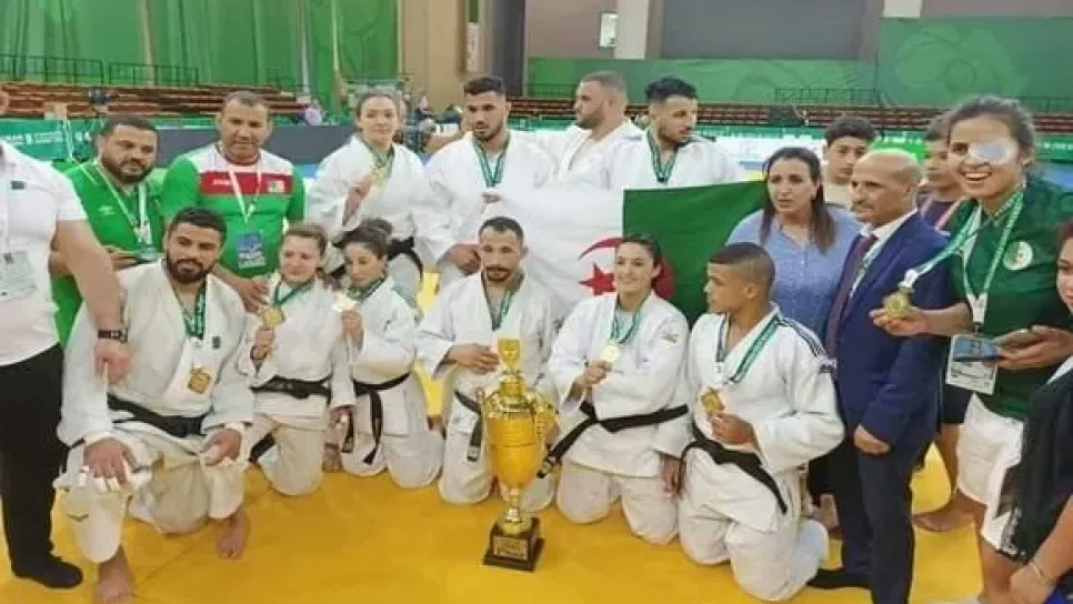 توج المنتخب الجزائري للجيدو (أكابر) بلقب البطولة الإفريقية في المنافسات حسب الفرق مختلط التي أقيمت اليوم الأحد بوهران في ختام النسخة 43 للحدث الرياضي القاري. وبعد تأهل سهل أمام الكاميرون في التصفيات، واجه المصارعون الجزائريون منافسة قوية في المواجهات النهائية من طرف نظرائهم من السنغال الذين كانوا قد تغلبوا على منتخب المغرب في الدور السابق. وتوجب انتظار المنازلة السادسة حتى يتجسد انتصار الجزائر بفضل حلاطة يمينة (-57 كغ) التي حسمت مصير نهائي البطولة الإفريقية مما سمح للجزائر بالفوز (4-2). وكانت حلاطة رابع عنصر في المنتخب الوطني يفوز بمنازلته بعد رضوان مسعود (-73 كغ) وبلكحل سعاد (-70 كغ) وعسلة...