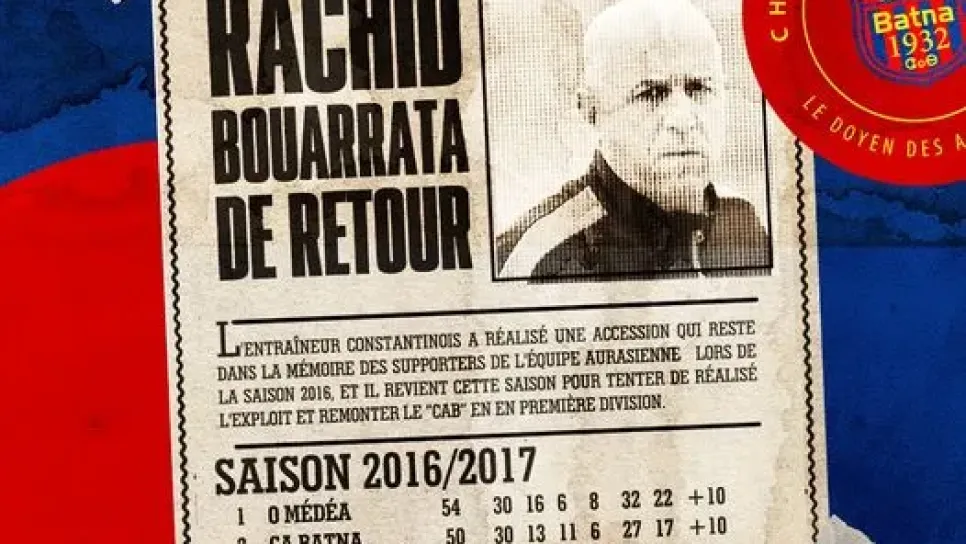أعلن نادي شباب باتنة، الناشط ضمن الرابطة المحترفة الثانية تعاقده مع المدرب رشيد بوعراطة. وسبق لبوعراطة وأن اشرف على تدريب " الكاب"، آخرها تحقيقه للصعود موسم 2016/2017. يشار إلى أنه سيتم تقدم المدرب واللاعبين مساء اليوم الخميس.