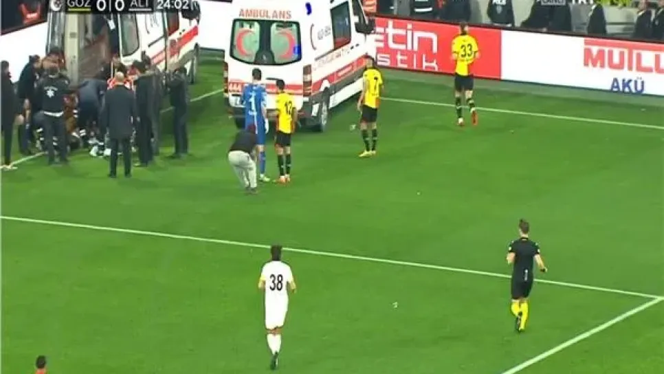 عرفت مباراة بين جوزتيبي وألتاي لحساب الجولة الـ 15 من دوري الدرجة الثانية التركي لكرة القدم، حدثا مؤسفا بعد أن هاجم أحد المشجعين حارس فريق ألتاي بعصا راية الركنية خلال المباراة. ومنذ الدقائق الأولى من المباراة التي أقيمت أمس الأحد، بدت مناوشات في المدرجات بين جماهير الفريقين. وفي مرحلة ما، بدأ مشجعو ألتاي في إلقاء الألعاب النارية على جماهير الفريق المنافس، وتعرض بعضهم للإصابة، ليقرر الحكم إيقاف اللعب في الدقيقة 19. وخلال توقف المباراة، ركض أحد مشجعي فريق جوزتيبي إلى أرض الملعب وخلع راية الركنية ثم انطلق بها نحو حارس مرمى ألتاي، أوزان أوزينج، قبل أن يضربه بها على رأسه وظهره بقوة...