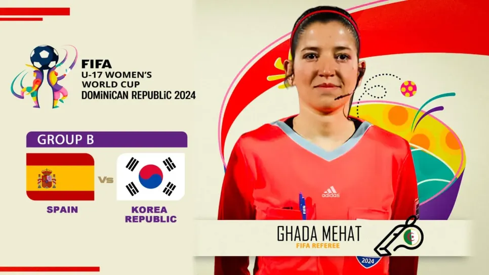 اختارت الفيفا الحكمة الجزائرية غادة مهات لتكون حكم مباراة في كأس العالم للسيدات أقل من 17 سنة، التي تُقام في جمهورية الدومينيكان. وستجمع المباراة بين إسبانيا وكوريا الجنوبية، يوم السبت في الساعة 16:00 بالتوقيت المحلي (21:00 بالتوقيت الجزائري). وأعلنت الاتحادية الجزائرية لكرة القدم (الفاف) في بيان لها: "تمت دعوتها من قبل لجنة التحكيم بالفيفا لتكون الحكمة الرئيسية خلال المرحلة النهائية من كأس العالم للسيدات أقل من 17 سنة، المقامة حاليًا في جمهورية الدومينيكان. تم تعيين غادة مهات لمباراة إسبانيا وكوريا الجنوبية التي ستُجرى يوم السبت في تمام الساعة 16:00 بالتوقيت المحلي، 21:00 بالتوقيت الجزائري"...