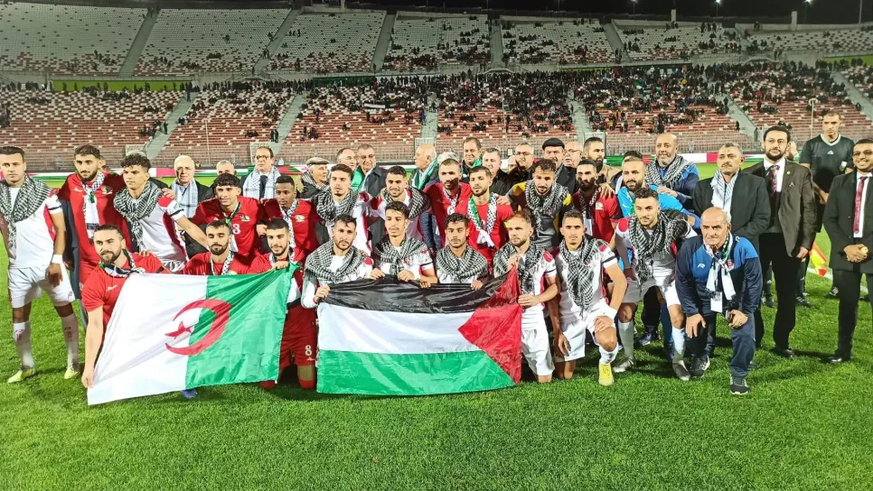 أجرى المنتخب الفلسطيني، مساء اليوم الجمعة، أول مقابلة ودية خلال معسكره التدريبي في مدينة عنابة. وواجه "الفدائيون" فريق اتحاد عنابة على ملعب 8 ماي 1956 وانتهت المقابلة بفوز ضيوف الجزائر بثلاثة أهداف مقابل هدفين. وتميزت المواجهة برفع أنصار اتحاد عنابة "تيفو" كوريغرافي في الدقيقة السابعة، نسبة إلى "طوفان الأقصى"، وحمل عبارة "ولعت" وهي الكلمة الشهيرة التي أطلقها أحد عناصر المقاومة الفلسطينية خلال استهدافه دبابة صهيونية في غزة. ويجري المنتخب الفلسطيني تربصا مغلقا بمدينة عنابة من 12 إلى 22 ديسمبر، تحضيرا لكأس آسيا المقررة في بداية 2024.