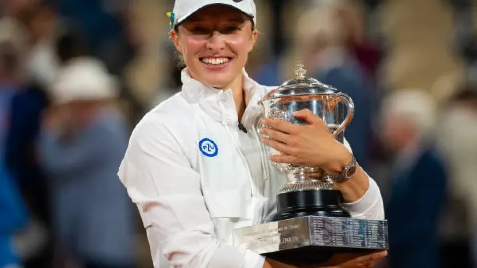 توجت البولندية إيغا شفيونتيك ، اليوم السبت، بلقب رولان غاروس الفرنسية، ثاني البطولات الأربع الكبرى، للمرة الثانية إثر فوز ساحق على الأمريكية اليافعة كوكو غوف بجولتين دون رد، بواقع (6-1) و(6-3) في غضون ساعة و8 دقائق. وهذا هو اللقب الثاني لشفيونتيك في رولان غاروس، وفي بطولات الغراند سلام بشكل عام، بعد تتويجها بلقب ذات البطولة في عام 2020. وبفوزها الـ35 تواليا ، عادلت شفيونتيك سلسلة الأمريكية فينوس وليامس عام 2000، الأطول في الألفية الثالثة، علماً أن الرقم القياسي يعود للتشيكوسلوفاكية-الأميركية مارتينا نافراتيلوفا (74 فوزا متتاليا عام 1984). كما هو اللقب التاسع في مسيرتها الشابة والسادس تواليا...