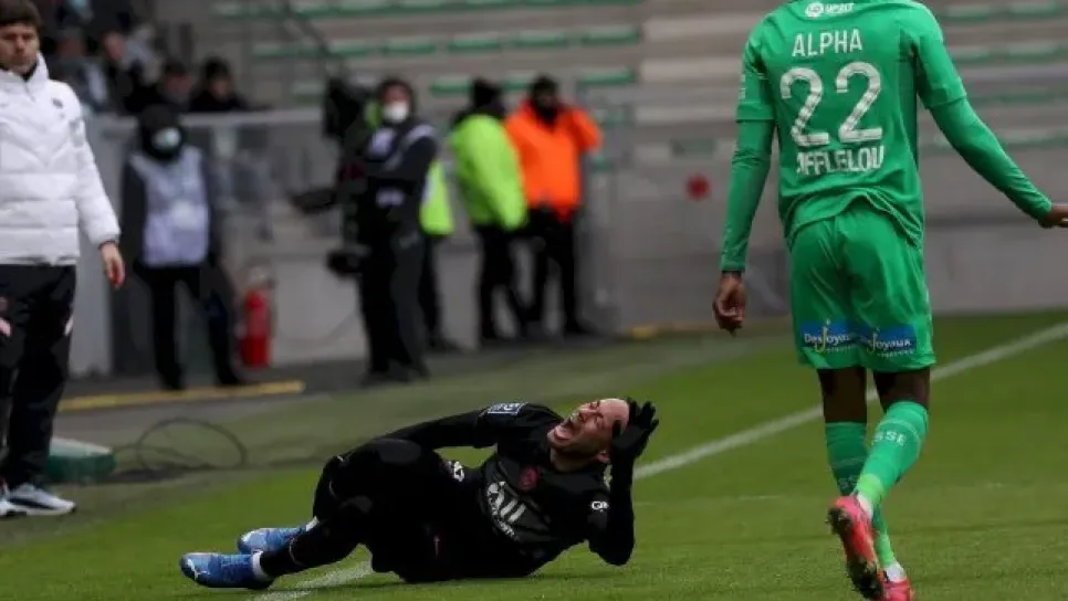 تلقى ظهر اليوم الأحد، نادي باريس سان جيرمان ضربة موجعة بعد إصابة لاعبه الدولي البرازيلي نيمار داسيلفا الذي تعرض لتدخل خشن من لاعب سانت إتيان، خلال اللقاء الذي جمع بينهما مما أدى إلى خروجه على نقالة المسعفين مباشرة إلى المستشفى. وكشف موقع " فوت ميركاتو" أنه من المتوقع أن تكون مدة غياب نيمار طويلة جدا نظرا لحجم الإصابة المروعة، على مستوى الكاحل. ونشرت شبكات قنوات " بيين سبورتس" القطرية صور التواء كاحل نيمار الذي سقط يتألم أرضا، كما تم تداولها عبر نطاق واسع على مختلف منصات التواصل الاجتماعي.