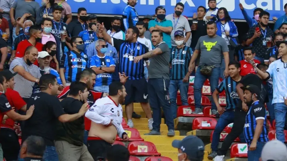 أعلنت السلطات المكسيكية إصابة 22 شخصا على الأقل بعد شجار وقع أمس السبت عندما اقتحمت الجماهير الملعب في مباراة بالدوري المحلي الممتاز بين كويريتارو وأطلس بطل الموسم الماضي ، وفق ما جاء عبر موقع " الجزيرة .نت". وانتشرت صور ومقاطع فيديو على مواقع التواصل الاجتماعي خلال تعرض بعض الناس للضرب والركل، وظهر آخرون على الأرض بلا حراك والدماء تسيل منهم، فيما بدا أنه داخل مدرجات ملعب مدينة كويريتارو. ولم يتسن لرويترز التحقق بشكل مستقل من اللقطات التي عرضتها أيضا محطات التلفزيون المحلية. وقالت رابطة الدوري المكسيكي على تويتر "العنف في ملعب لاكوريجيدورا في كويريتارو غير مقبول ومؤسف، سيتم فرض عقوبات استث...