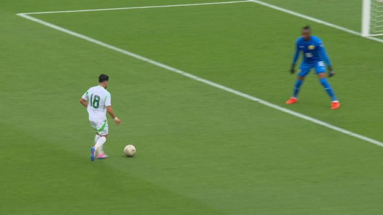 أول فرصة لـ "الخضر"، عمورة يضيع وجها لوجه وكان بامكانه التمرير لزميله بن رحمة الذي كان وحده أمام الشباك. للإشارة عمورة انفرد بحارس الخصم بعد تمريرة سحرية من رياض محرز.