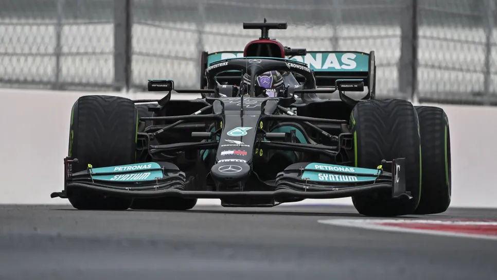 تألق سائق مرسيدس لويس هاميلتون وخطف الفوز سباق جائزة روسيا الكبرى، الجولة الخامسة عشر بطولة العالم للفورمولا وان ، لموسم 2021 تحت الأمطار،.
