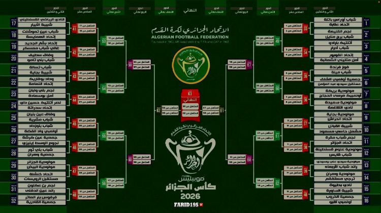 أجريت، مساء اليوم الخميس، قرعة كأس الجزائر لموسم 2025-2026 والتي أسفرت عن تجنب صدامات قوية بين اختصاصي المنافسة في الدور الـ 32.