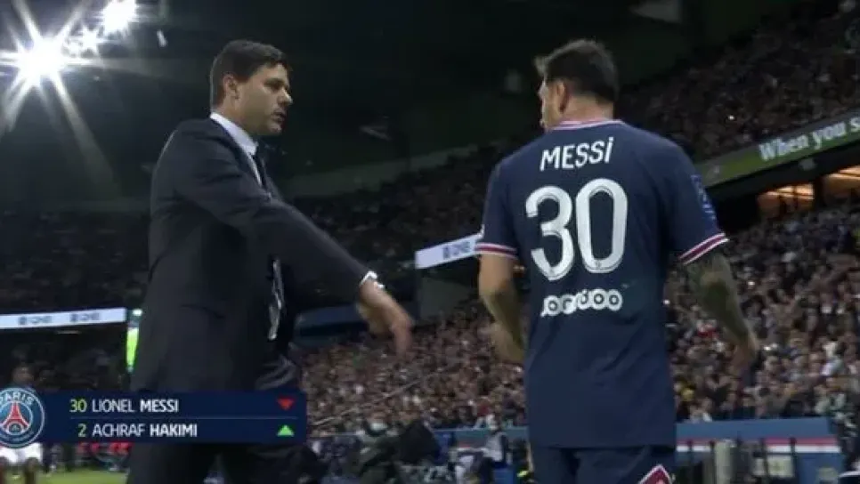 رفض اللاعب الأرجنتيني ليونيل ميسي، لاعب باريس سان جيرمان الفرنسي مصافحة مدربه بوكيتينو بعد أن قام تبديله في مباراة ليون، التي انتهت لصالح نادي العاصمة الفرنسية بنتيجة 2_1. وشارك ميسي في المباراة منذ بداية اللقاء وتقدم ليون بهدف قبل أن يعادل نيمار النتيجة من ضربة جزاء تحصل عليها من مراوغة لمدافع ليون. وقام بوكتينيو بإشراك أشرف حكيمي بدلا من ميسي في الدقيقة 74 من عمر المباراة، الأمر الذي أغضب ميسي ورفض مصافحة مديره الفني. وشارك المهاجم الجزائري اسلام سليماني كأساسي في اللقاء إلا أنه فشل في الوصول إلى شباك باريس.